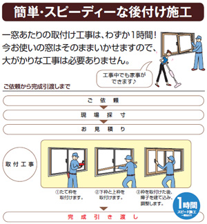 スピード施工で「お手軽」樹脂の熱伝導率はアルミの1/1000。その優れた断熱性で外気温の影響を受けにくくし、冷暖房効果を高め、ムダなエネルギーの使用を減らして、冷暖房コストを大幅に節約できます。 ![]() |