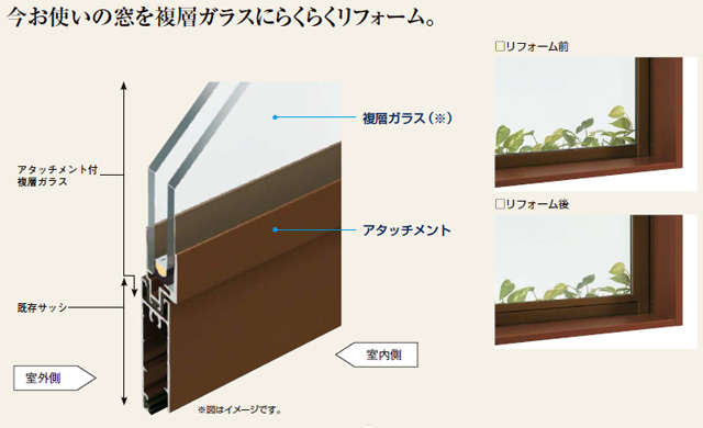 アタッチメント付複層ガラスはリフォームに最適な後付型です。