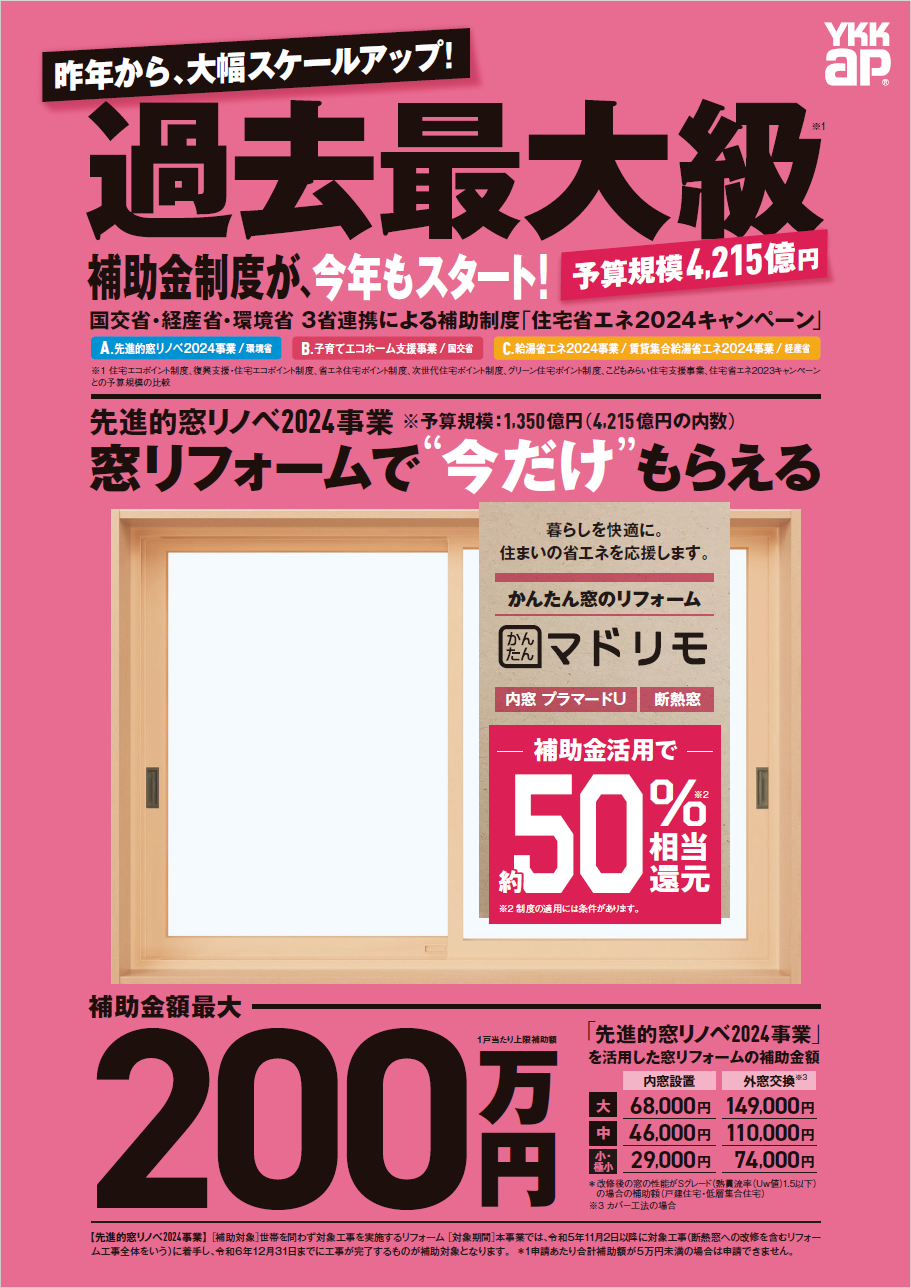 先進的窓リノベ2024事業・子育てエコホーム支援事業が始まります! この機会をお見逃しなく! お問い合わせはお気軽にきび窓業 0866-92-0738まで。 #広告 #YKK AP #窓リフォーム #窓補助金 #ドアリフォーム